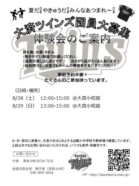 8月28日(土曜日)、29日に体験会を開催します。
