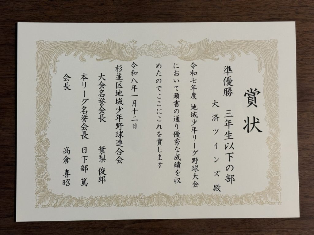 杉並区少年リーグ3年生以下準優勝!!